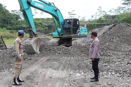 Saat di lokasi, petugas gabungan mendapati aktivitas penambangan pasir di aliran kali lahar yang diduga tak berizin sehingga petugas gabungan mengamankan enam pekerja, satu unit eskavator, dan satu unit dump truk di lokasi.