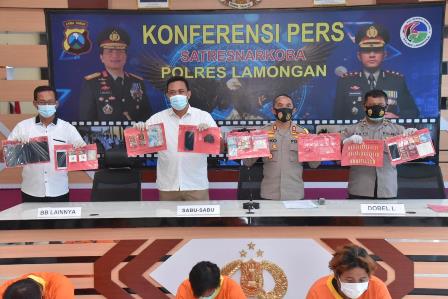 LAMONGAN – Satreskoba Polres Lamongan berhasil mengungkap peredaran Narkoba yang tengah di tangani dalam kurun waktu selama dua Minggu tanggal 1 sampai 17 Januari 2021 mengungkap 6 kasus Narkoba dengan 7 tersangka dan barang bukti sabu – sabu sebanyak 4,01 dan pil dobel L sebanyak 1.190 butir.