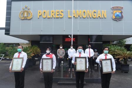 Pemberian penghargaan diberikan kepada Kapolres bersama anggota atas dedikasi dan kerja keras dalam penegakan hukum dan perlindungan perempuan dan anak di Kabupaten Lamongan.