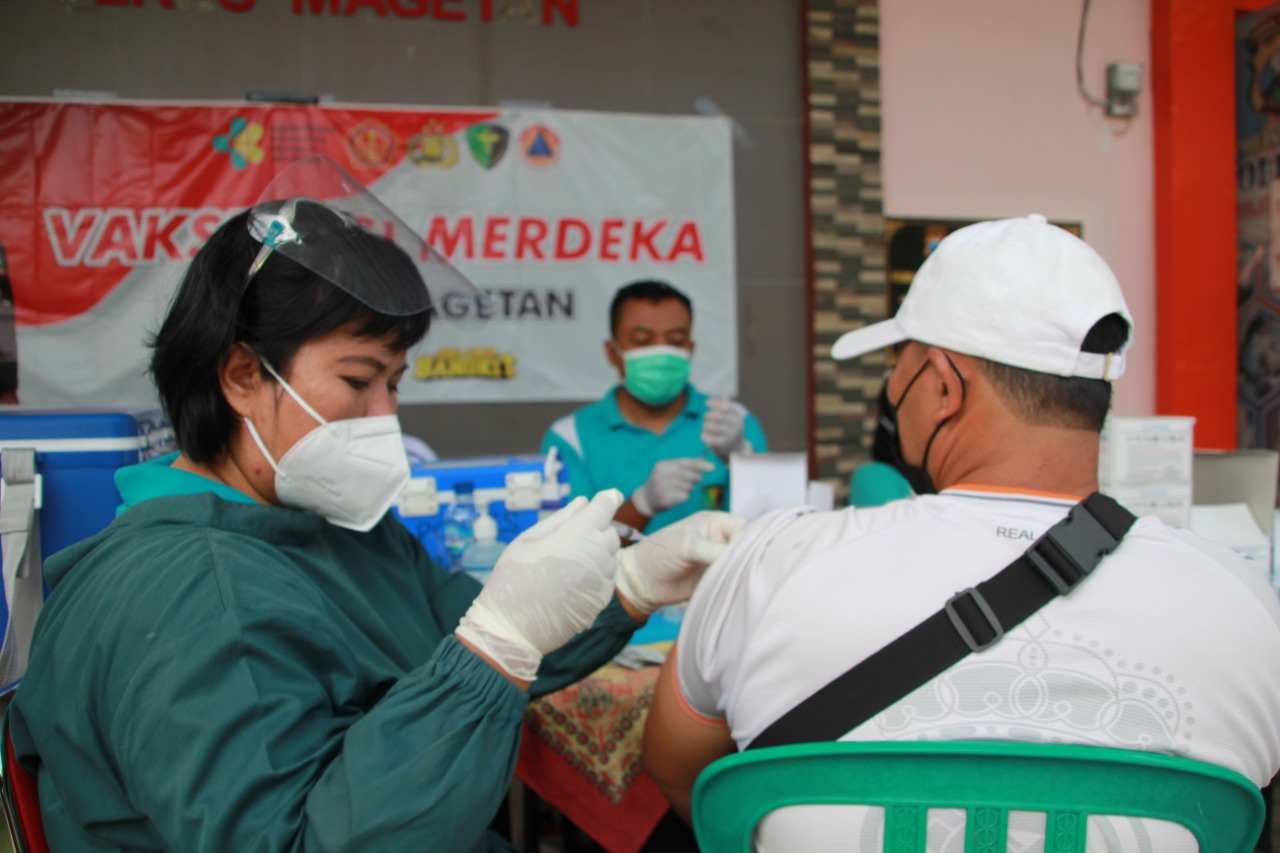 Magetan | Jatim.siberindo.co – Kepolisian Resor (Polres) Magetan Jawa Timur, kembali menggelar kegiatan Vaksinasi Massal. Melalui program Vaksinasi Merdeka tersebut, Dokkes Polres Magetan menyediakan 1000 Dosis Vaksin terdiri dari 300 Dosis Tahap I dan 700 dosis tahap II. Selasa (21/09/2021).