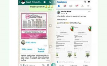 Selain itu nomor kontak WhatsApp H Abdullah Hidayat tidak luput dari pembobolan dengan menjanjikan kemudahan program Multifinance Sinarmas dan permintaan uang jutaan rupiah