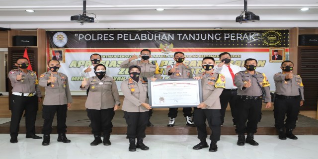 Surabaya – Perjuangan Polres Pelabuhan Tanjung Perak untuk memperoleh predikat zona integritas (ZI) Wilayah Birokrasi Bersih dan Melayani (WBBM) selama setahun ini tak berakhir sia-sia. Instansi ini akhirnya berhasil meraih predikat tersebut Senin, (21/12/2020).