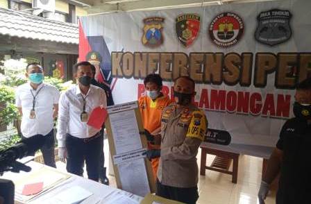 AKBP Miko mengungkapkan, Pada hari Sabtu tanggal 20 Februari 2021 sekira jam 02.00 WIB pelaku berhasil ditangkap di rumah orang tuanya yang beralamat di Jln. Conggeang Dusun Cientiung Desa Cipamekar Kecamatan Congeang Kabupaten Sumedang oleh tim gabungan penyidik dan OPSNAL Jaka Tingkir Polres Lamongan dan dibawa ke Polres lamongan untuk dilakukan penyidikan lebih lanjut.