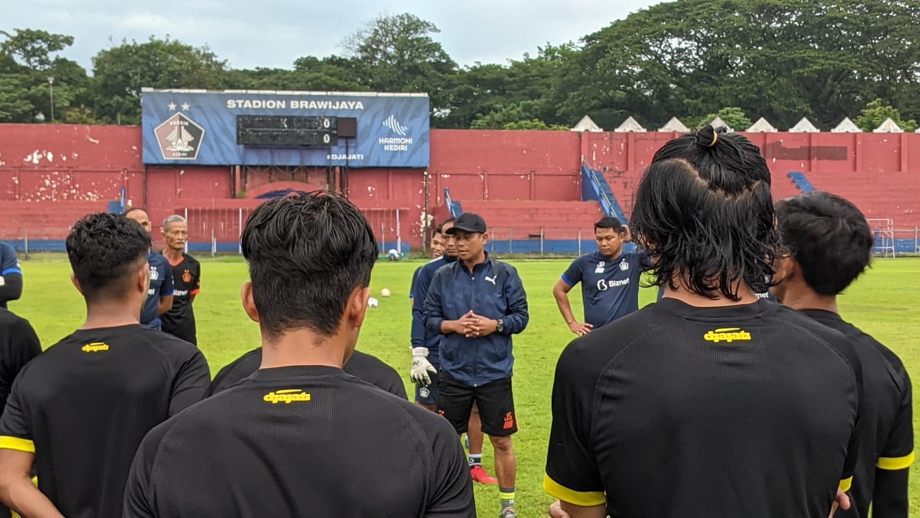 FOTO : Pelatih Persik Kediri, Joko Susilo saat memberikan arahan kepada para pemainnya di Stadion Brawijaya,.Kota Kediri, beberapa pekan lalu.
