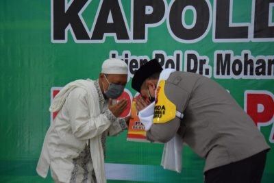 Selanjutnya, Kapolda Jatim memberikan Cindera mata kepada perwakilan ulama’ NU Kabupaten Pamekasan yang diterima langsung oleh KH. Afifuddin Toha (Ketua Rois Suriyah PC.NU Pamekasan) serta memberikan bantuan sosial berupa 1 ton beras dan 2500 masker, pungkasnya.