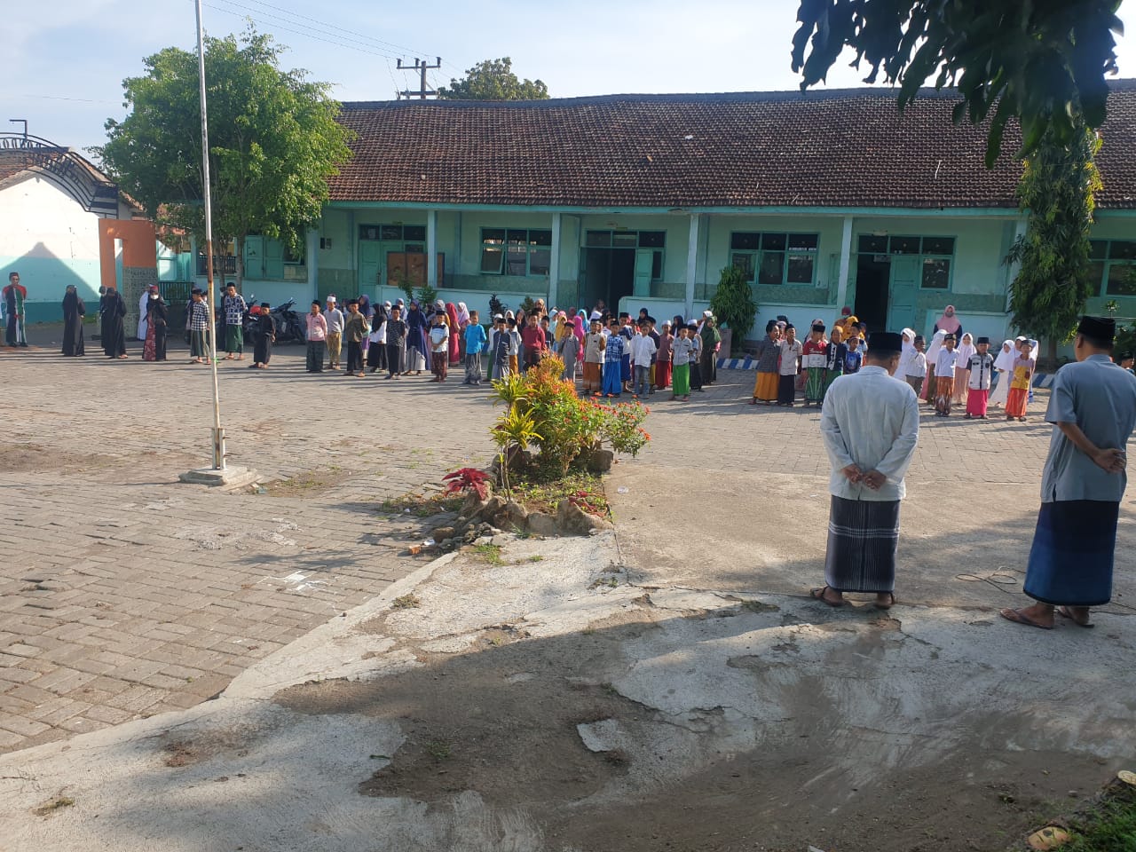 “Sesuai edaran dari Kementerian Agama para peserta upacara menggunakan sarung dan atasan putih, serta menggunakan peci hitam kemudian untuk putri menyesuaikan, karena ini masih masa pandemi para peserta diperlakukan protokol kesehatan Covid-19.” Ungkapnya.