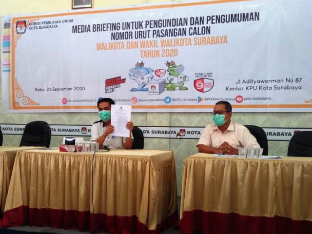Menurut keterangan Ketua KPU Surabaya Nur Syamsi, tidak diundangnya pihak bapaslon untuk menerapkan protokol kesehatan pencegahan Covid-19. Jika ada undangan, rawan menimbulkan kerumunan massa.