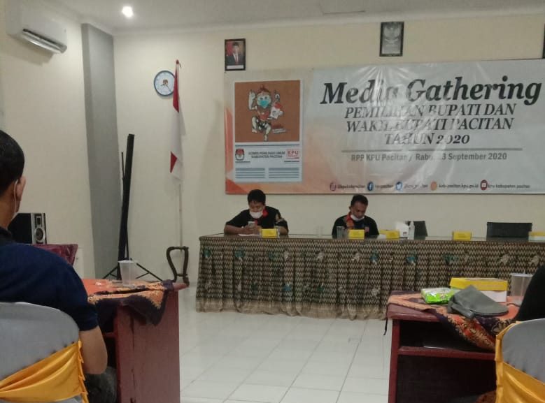 PACITAN – Komisi Pemilihan Umum (KPU) Kabupaten Pacitan adakan media Gathering dengan para awak media dengan tema ” Pemilihan Bupati Dan Wakil Bupati Pacitan Tahun 2020 ” yang digelar di Ruang RPP KPU Kabupaten Pacitan, Rabu(23/09/2020)malam.
