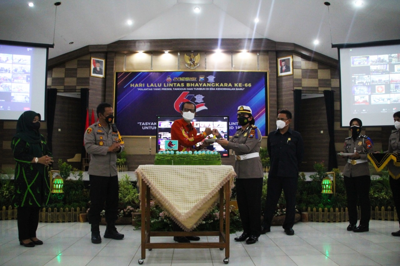 Diawali komunikasi interaktif secara virtual terkait perkembangan penanganan Covid-19 bersama Forkopimda Jatim, tasyakuran HUT Lalulintas Bhayangkara ke 66 tahun 2021, juga dilakukan secara serentak oleh Polda Jatim bersama seluruh jajaran.