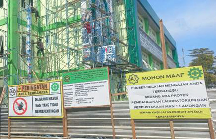 LAMONGAN | Siberindo.co – Proyek pembangunan gedung laboratorium dan perpustakaan MAN 1 Lamongan tahun 2023 senilai Rp 5.239.778.675,87 molor dari jadwal yang telah ditetapkan. Proyek seharusnya rampung pada tanggal (15/10) lalu, namun.hingga kini proyek tersebut belum juga selesai.