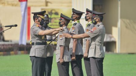 “Hari ini saudara-saudara resmi dilantik jadi anggota Polri dengan menyandang pangkat brigadir polisi dua dan hari ini telah melekat pada diri saudara, tugas kewajiban dan tanggung jawab sebagai bhayangkara negara yang bertugas untuk memberikan perlindungan pengayoman dan pelayanan kepada masyarakat serta menegakkan hukum yang adil, guna memelihara keamanan dan ketertiban masyarakat,” ucapnya.