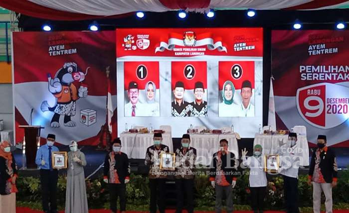 LAMONGAN – Komisi Pemilihan Umum (KPU) Lamomgan telah melaksanakan pengundian nomor urut pasangan calon bupati dan wakil bupati di Sport Centre Lamongan (SCL) Jalan Basuki Rahmad Lamongan pada Kamis (24/09)