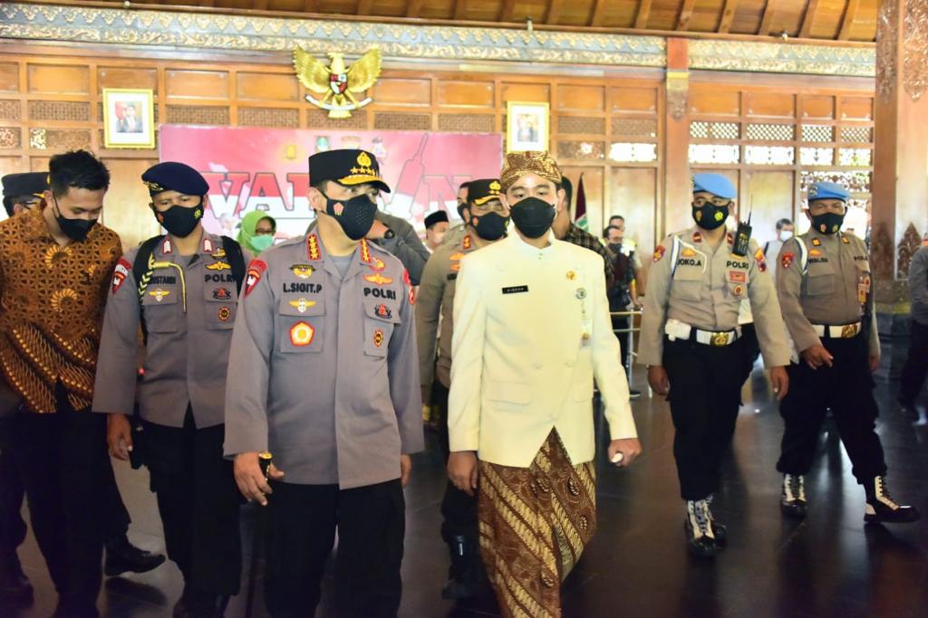 JAKARTA— Kapolri Jenderal Polisi Listyo Sigit Prabowo terus memantau kelancaran program vaksinasi nasional. Kali ini, jenderal bintang itu bergerak ke Solo, Jawa Tengah. Ditemani Wali Kota Solo Gibran Rakabuming, Kapolri melihat langsung proses jalannya vaksinasi di Pendapi Gede atau Balaikota Surakarta.