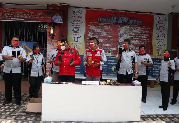 NGAWI – Lembaga Pemasyarakatan (Lapas) IIB Ngawi Jawa Timur memusnahkan barang bukti HP dan Barang Terlarang hasil sidak (inspeksi mendadak) langsung oleh Kakanwil Kemenkumham Jatim, Jumat(24/09/2021).