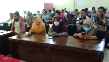 Pertemuan di aula Diskumnaker jalan Rajawali Rabu 25/11 dipimpin oleh Tugas Joko Warsito Kasi Pengembangan Pemasaran dan Kemitraan Diskumnaker dan dihadiri oleh 40 PKL