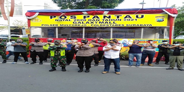 Surabaya – Sambut perayaan malam Natal dan Tahun Baru 2021, Kamis (24/12/2020) sore, Kepolisian Sektor Mulyorejo Jajaran Polrestabes Surabaya bersama unsur 3 Pilar melaksanakan kegiatan apel gelar pasukan di depan Pos Pantau Galaxy Mall.