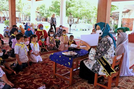 Dalam kunjungan ini, Fatma membacakan cerita tentang Sirup Kebonagung minuman khas Kota Pasuruan dan mengajak anak-anak belajar sambil bermain dan bernyanyi.