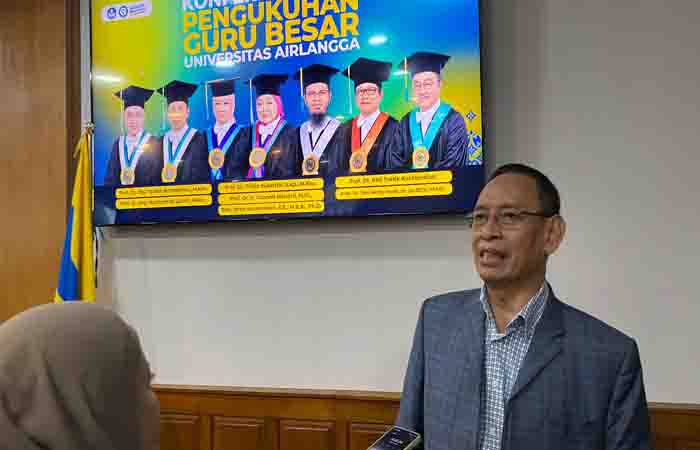 SURABAYA | Siberindo.co – Universitas Airlangga (UNAIR) akan menggelar pengukuhan sejumlah guru besar (Guber) pada 26-27 Juli 2023 mendatang. Sebagai tindak lanjut, Rektor Unair Prof Dr Mohammad Nasih SE MT Ak CMA menggelar konferensi pers di Ruang Balai RUA, Gedung Manajemen Kampus Merr (C) Unair, Surabaya. Selasa, (25/7/2023) siang.