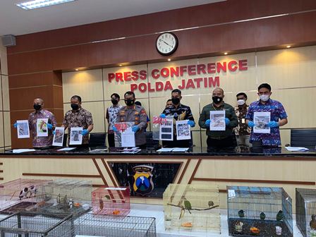 SURABAYA | Siberindo.co – Tindak Pidana Tertentu (Tipiter) berupa melawan perbuatan hukum dengan cara melakukan penjualan pada konservasi sumber daya alam hayati dan ekosistemnya. Hal itu diungkap dalam konferensi pers Polda Jatim yang dipimpin Wadir Krimsus Polda Jatim, AKBP Zulham Effendy dengan didampingi Kabid Humas Polda Jatim, Kombes Pol Dirmanto bersama BBKSDA Jatim dan Kanwil IV KPPU di Mapolda Jatim, Surabaya. Jumat, (26/8/2022).