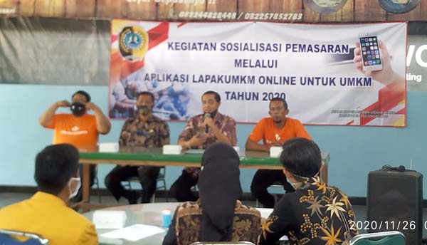 TULUNGAGUNG – Dinas Koperasi (Diskop) dan Usaha Mikro (UM) Kabupaten Tulungagung sosialisasi pemasaran melalui aplikasi Lapak UMKM online untuk UMKM tahun 2020 bersama komunitas UMKM, netizen, peduli IT dari Perguruan tinggi di warung Kebunsari, Kelurahan Botoran, Kamis (26/11/2020). Dengan digital marketing/pemasaran online melalui lapak UMKM diharapkan membangkitkan kembali ekonomi masyarakat Tulungagung yang sempat mengalami penurunan di masa pandemi covid-19.