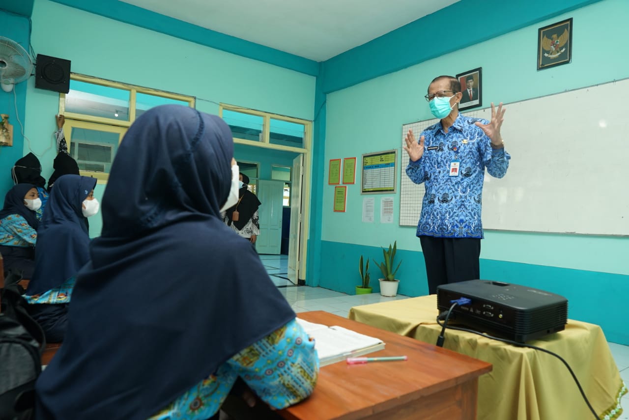 MAGETAN | JATIM.SIBERINDO.CO – Bupati Magetan Dr. Drs. H. Suprawoto, SH. M.Si., menyempatkan diri untuk mengajar siswa siswi salah satu kelas di SMP Negeri 2 Kabupaten Magetan Jawa Timur. Ia memberikan sedikit materi pelajaran, sekaligus motivasi dan semangat kepada anak-anak didik SMPN 2 Magetan, usai mengikuti upacara Hari Guru Nasional, pada 25 November 2021.