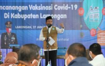 “Lamongan siap melaksanakan dan mesukseskan vaksinasi covid-19, telah kami siapkan 72 tim dengan 410 sumber daya manusia. Sejak kedatangan vaksin senin lalu, kita telah distribusikan ke- 45 fasilitas layanan kesehatan. Sehingga hari Rabu dapat digelar serentak pencanangan vaksin Covid-19 di Kabupaten Lamongan.” Terang Taufiq Hidayat, Kepala Dinas Kesehatan Kabupaten Lamongan dalam Laporannya.