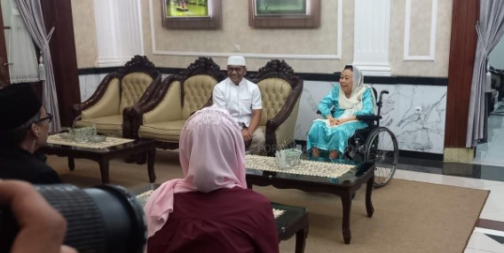 Masyarakat dari berbagai kalangan duduk tanpa sekat bersama istri Gus Dur di Pendopo Kabupaten.