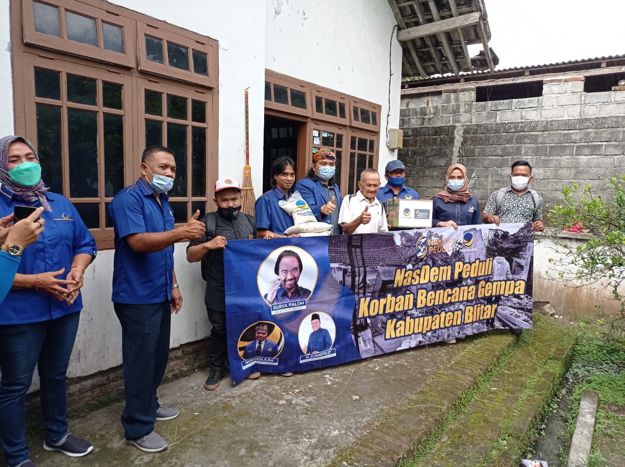 BLITAR- Nasdem Peduli Korban Bencana Gempa, menyerahkan paket bantuan kepada warga di Kabupaten Blitar, Jawa Timur yang terdampak gempa bumi berkekuatan magnitudo 6,1 SR pada Sabtu 10 April 2021 lalu. Bantuan diberikan ke wilayah terdampak gempa di sejumlah Kecamatan, digelar 28 April-2 Mei 2021.