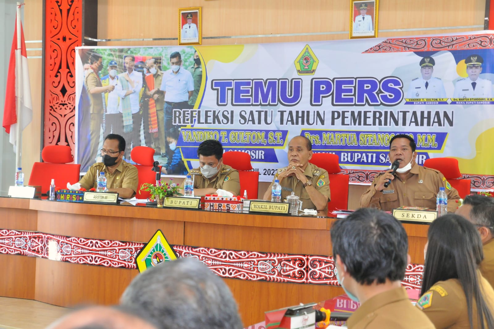 Hal tersebut terungkap saat Pemkab Samosir menggelar temu pers refleksi satu tahun pemerintahan Bupati /Wakil Bupati Samosir Vandico T. Gultom dan Martua Sitanggang, di aula Kantor Bupati Samosir, Desa Rianiate Kecamatan Pangururan Kabupaten Samosir, Selasa, 27 April 2022 lalu.