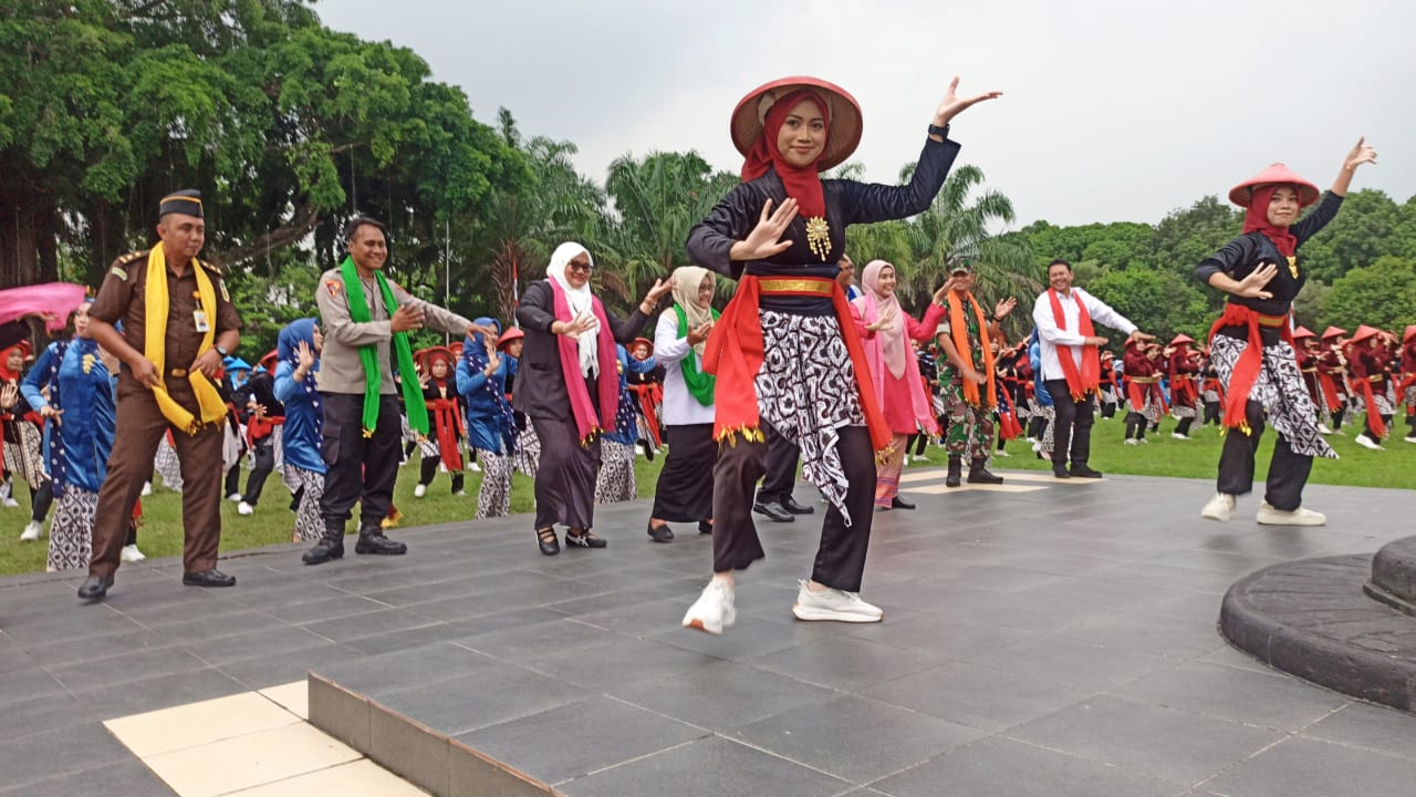 Bupati Magetan, Nanik Endang Rusminiarti, didampingi Wakil Bupati serta jajaran Forkopimda, turut hadir dan menari bersama dengan ribuan peserta di tengah alun-alun, sehingga menciptakan suasana meriah dan penuh kebersamaan.