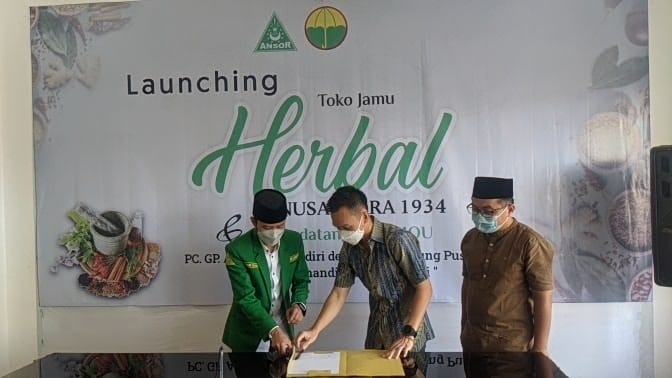 Momentum kesepakatan kerjasama ditandai dengan penanda tanganan kontrak kerjasama antara GP Ansor Kabupaten Kediri bersama PT Payung Pusaka Mandiri.Masing-masing, diwakili Agus Rizmi Haitami Azizi dan Rangga Prasetya, disaksikan secara langsung oleh peserta dan tamu undangan yang hadir. Lalu, dilanjutkan dengan peresmian Toko Jamu Herbal Nusantara 1934, dengan ditandai pemotongan pita