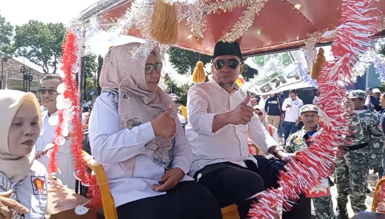 Magetan | jatim.siberindo.co – Hari kedua pendaftaran Calon Bupati (Cabup) dan Calon Wakil Bupati (Cawabup) 2024, pasangan Nanik Endang Rusminiarti – SuyaTNI Priasmoro, secara resmi telah mendaftar ke KPU Magetan dengan naik delman. Rabu (28/8/2024).