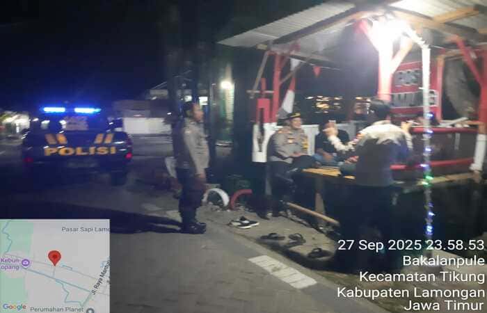 LAMONGAN,Jatimsiberindo.co – Polsek Tikung terus memperkuat sinergi dengan masyarakat dalam menjaga keamanan dan ketertiban lingkungan. Hal itu diwujudkan melalui patroli dialogis yang dipimpin Kapolsek Tikung, AKP Anang Purwo Widodo, bersama anggotanya di Pos Kamling Dusun Sekargeneng, Desa Bakalanpule, Sabtu (27/9/2025) malam.