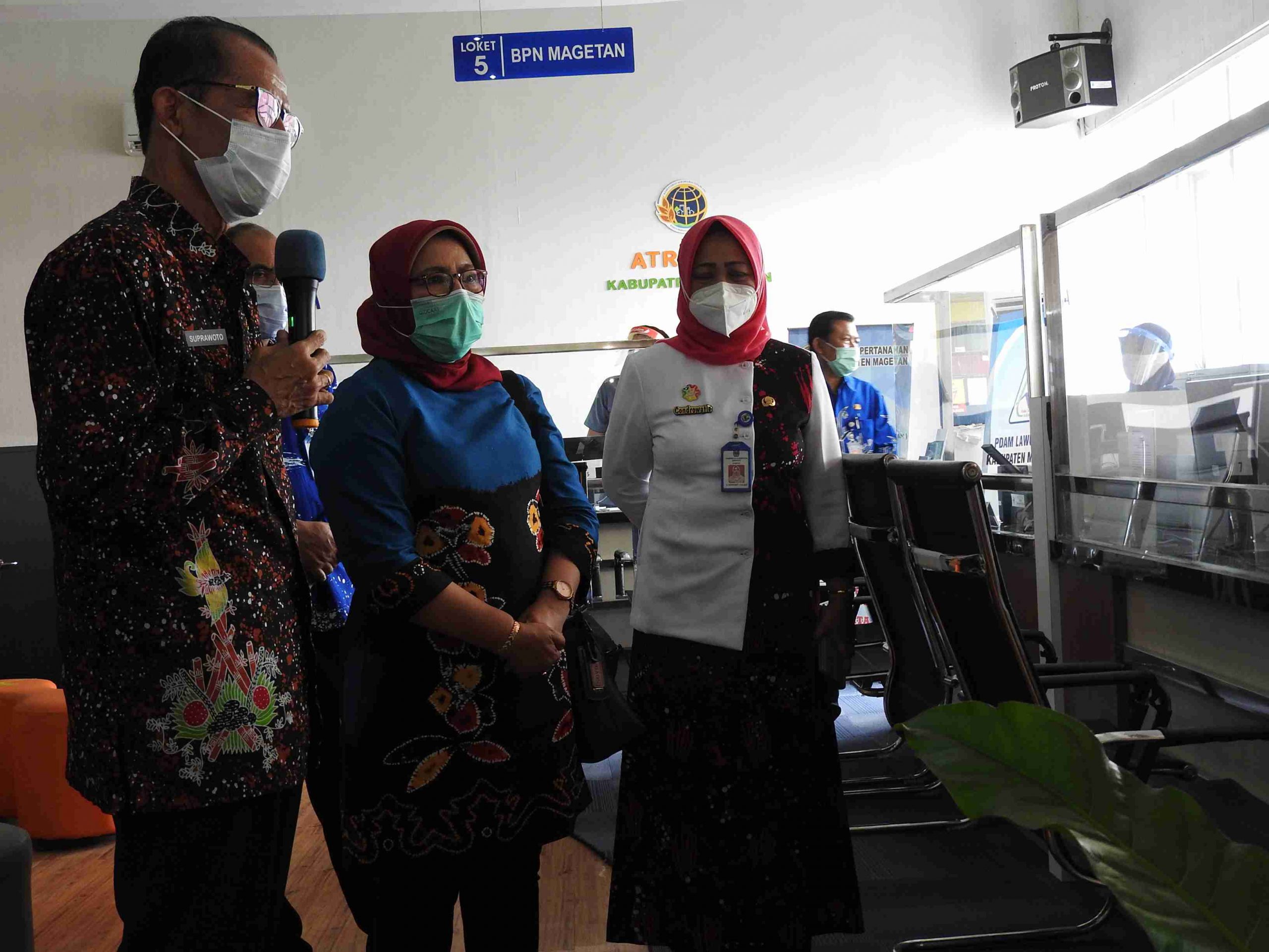 Asdep KemenPAN-RB tersebut, meninjau langsung progres perbaikan dan pelayanan MPP Magetan, dengan didampingi Bupati Magetan, beserta Kepala OPD terkait. MPP Magetan dibuka mulai Januari 2020 dengan ratusan pelayanan gabungan 22 instansi yang bertugas melayani masyarakat.