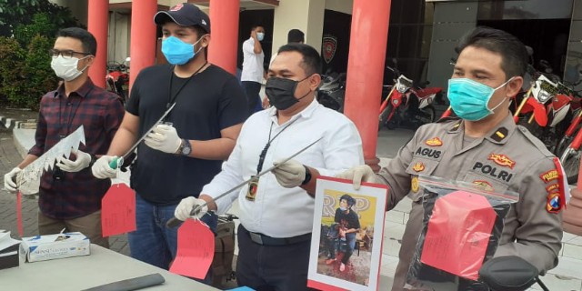“Barang bukti senjata yang kami sita berupa samurai dan parang serta satu benda tajam menyerupai gergaji. Barang-barang tersebut mereka ambil dari rumah dan mereka buat sendiri,” jelasnya.