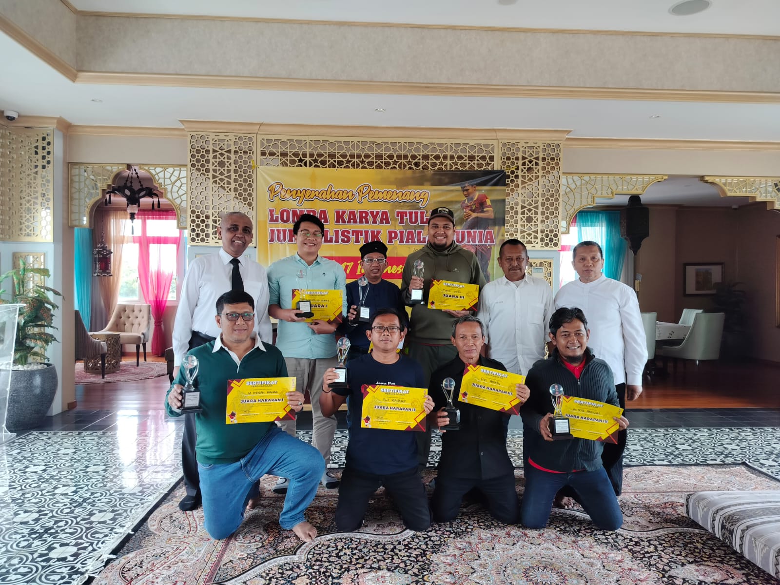 Juara dua diraih oleh Ahmad Zilky dari kompas.com dengan judul ‘Piala Dunia U-17 2023: Bangun Kepercayaan FIFA, Jalan Indonesia ke Sepak Bola Modern. Dan Juara ketiga diraih oleh Fariz Yarbo dari ngopibareng.id dengan karya berjudul ‘Piala Dunia U-17, Aksi PSSI Wujudkan Transformasi’.