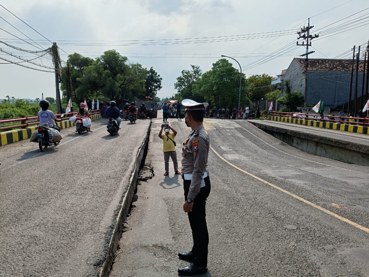 “Kita melaksanakan pengalihan arus dan pengaturan lalu lintas di lokasi sepanjang jalan nasional dekat lokasi. Koordinasi dengan Polres Gresik dan Polres Tuban untuk melaksanakan pengalihan arus Pantura dan arah Mojokerto,” kata Rangga di lokasi jembatan yang ambles.