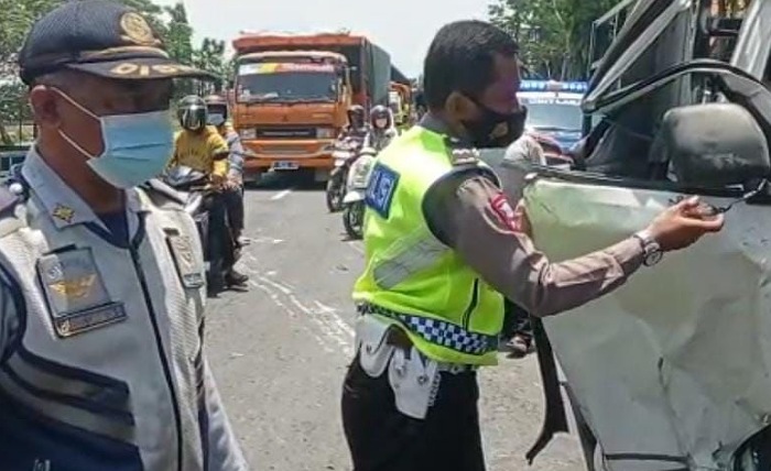 “Semula kendaraan Pick Up Box No. Pol. L-9537-BL yang dikemudikan Irwanto dengan penumpang M Agus berjalan di lajur kanan,” ungkapnya.