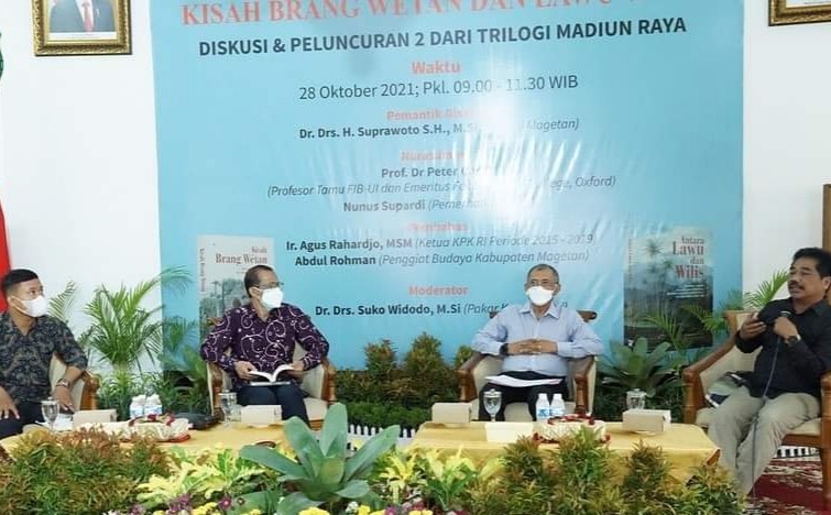 Bedah buku tersebut dilaksanakan di Pendopo Surya Graha Magetan, baik secara langsung maupun virtual, dengan menghadirkan Peter Carey, seorang Profesor Tamu FIB-UI dan Emeritus Fellow, Trinity Collage, Oxford, Kamis (28/10/2021).