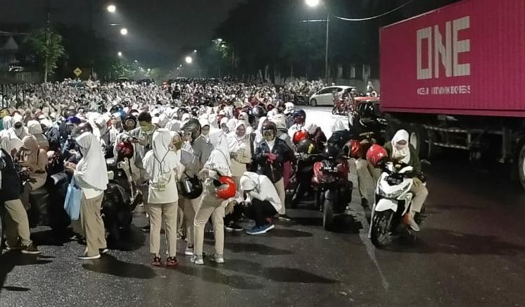 Adanya pelaksanaan kegiatan aksi tersebut hingga hingga malam hari dan berujung penutupan pintu di akses pintu masuk PT SAI yang berakibat terjadi ribuan karyawan atau buruh berkerumun.