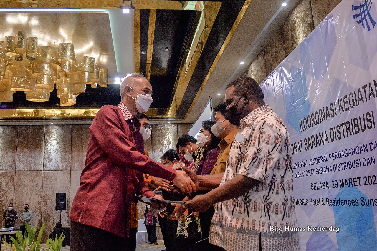 Penyerahan dilakukan secara simbolis kepada 10 kabupaten/kota oleh Direktur Jenderal Perdagangan Dalam Negeri Oke Nurwan pada Selasa (29/3), di Denpasar, Bali.