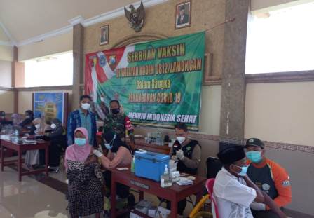 LAMONGAN, RadarBangsa.co.id – Dalam mendukung kampanye pemerintah untuk penanganan Covid-19 “Menuju Indonesia Sehat” Kodim 0812/Lamongan kembali menggelar serbuan vaksinasi bertempat di kantor desa Tawangrejo pada Kamis, (30/9/2021).