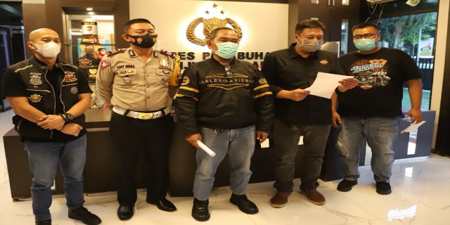 Surabaya – Pernyataan maaf disampaikan anggota rombongan motor Harley Davidson kepada masyarakat di Mapolres Pelabuhan Tanjung Perak, pada Rabu, (30/12/2020).