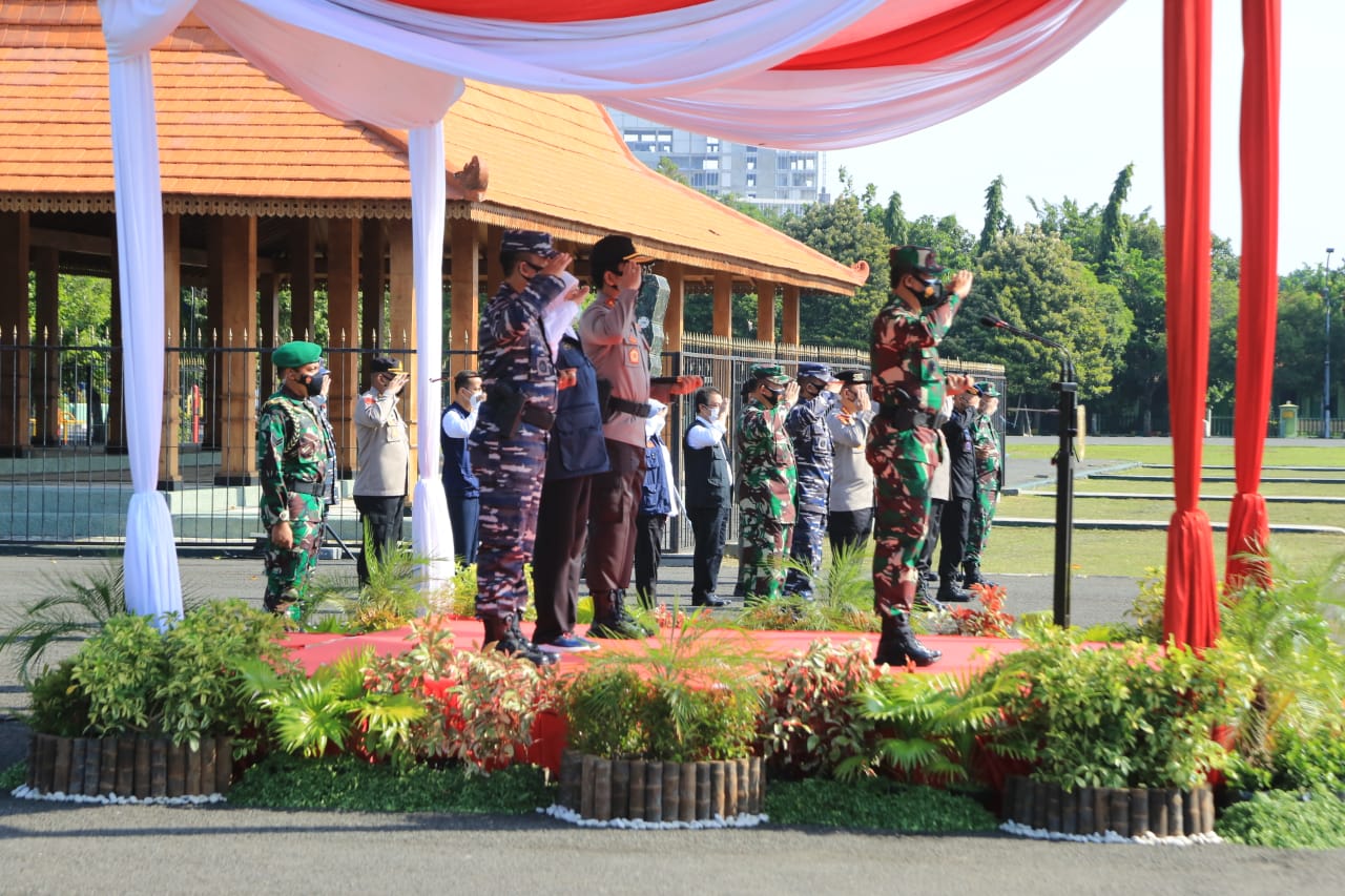 Surabaya – Forkopimda Jawa Timur Gubernur Jatim Khofifah Indar Parawansa, Pangdam V Brawijaya Mayjen TNI Suharyanto, Pangkoarmada II Laksda TNI I.N.G Sudihartawan dan Kapolda Jawa Timur Irjen Pol Dr. Nico Afinta, didampingi Pejabat Utama (PJU) Polda Jatim serta Kabid Humas Polda Jatim Kombes Pol Gatot Repli Handoko, Minggu 31 Januari 2021, menggelar Apel Gelar Pasukan dalam rangka Operasi Tegakan Disiplin Protokol Kesehatan di Lapangan Makodam V Brawijaya.