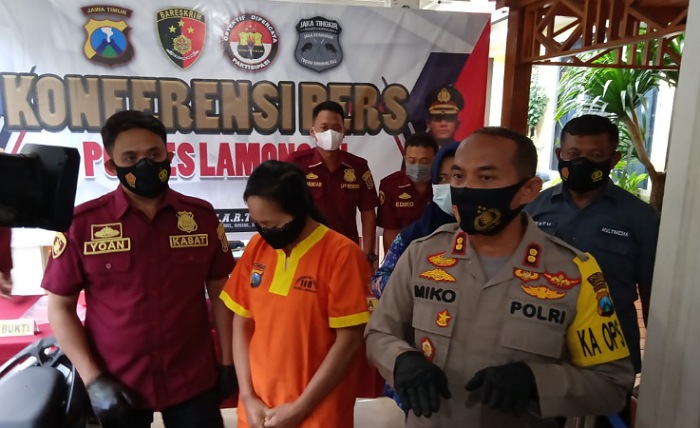 “Pelaku ditangkap di rumahnya tanpa perlawanan,” tegas Kapolres Lamongan AKBP Miko Indrayana didampingi Kasat Reskrim AKP Yoan Septi Hendri saat gelar pers rilis ungkap kasus di Mapolres Lamongan.