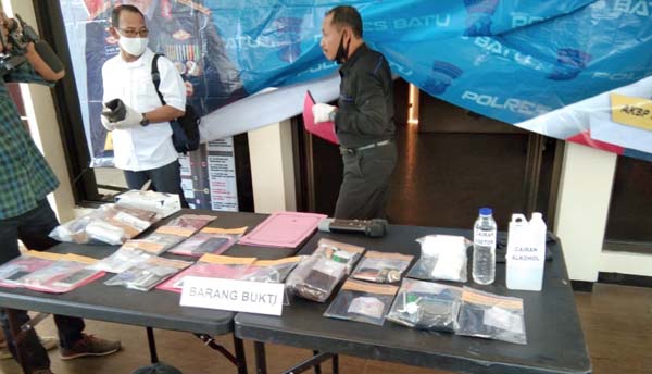 BATU – Polres Batu berhasil mengungkap 11 kasus narkotika selama dua bulan mulai 4 Juni sampai 27 Juli 2020. Selain mengamankan barang bukti Narkoba dengan berbagai jenis, Polres Batu juga mengamankan tujuh bandar dan sepuluh sebagai pemakai narkotika.