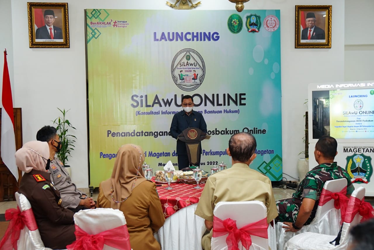 Magetan | Jatim.Siberindo.Co – Pengadilan Negeri Magetan meluncurkan aplikasi pelayanan Pos Bantuan Hukum Online yang diberi nama “SiLAwU” (Konsultasi Informasi Layanan Bantuan Hukum Online), bertempat di Pendopo Surya Graha Kab Magetan, pada Selasa (30/8/2022).