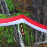 LUMAJANG – Dalam rangka Hari Bhayangkara ke 75, Kepolisian Resor (Polres) Lumajang Jawa Timur mengibarkan Bendera Merah Putih Raksasa di wisata