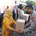 Sambut HUT Bhayangkara Ke-75, Polrestabes Surabaya Distribusikan Ratusan Paket Sembako