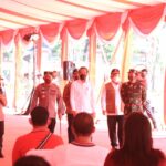 JAKARTA—- Presiden Joko Widodo meninjau langsung pelaksanaan vaksinasi massal di Lapangan Bhayangkara, Mabes Polri, Jakarta, Sabtu (26/6/2021). Presiden didampingi oleh Kapolri